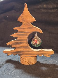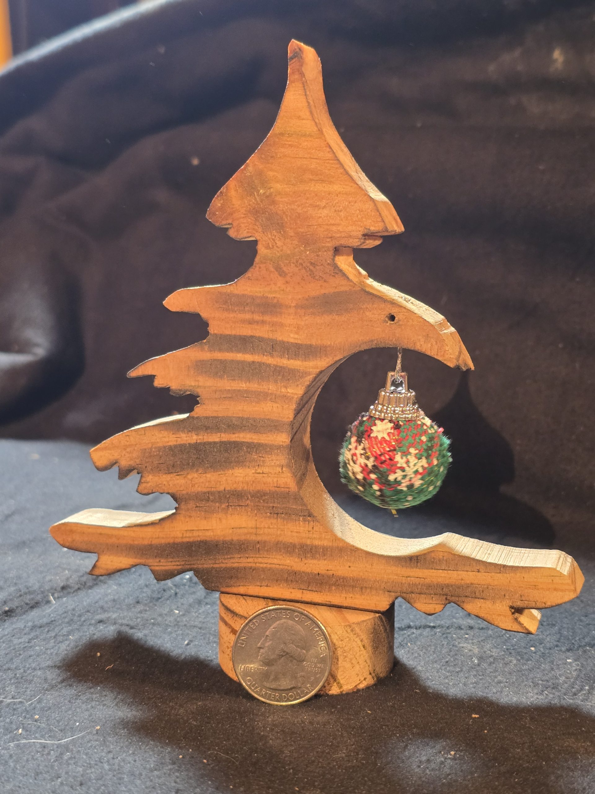 Total height is ~6″, ornament is 1″ round. Quarter in the photo below is for scale.